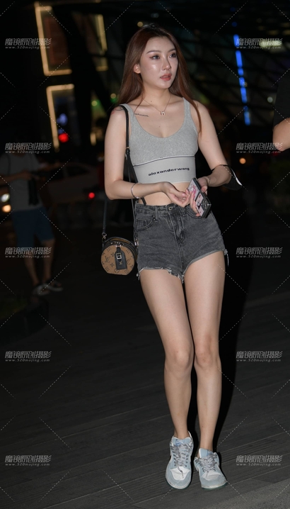 街拍圆润紧绷的新潮热裤长腿辣妹[KI-7BDA]